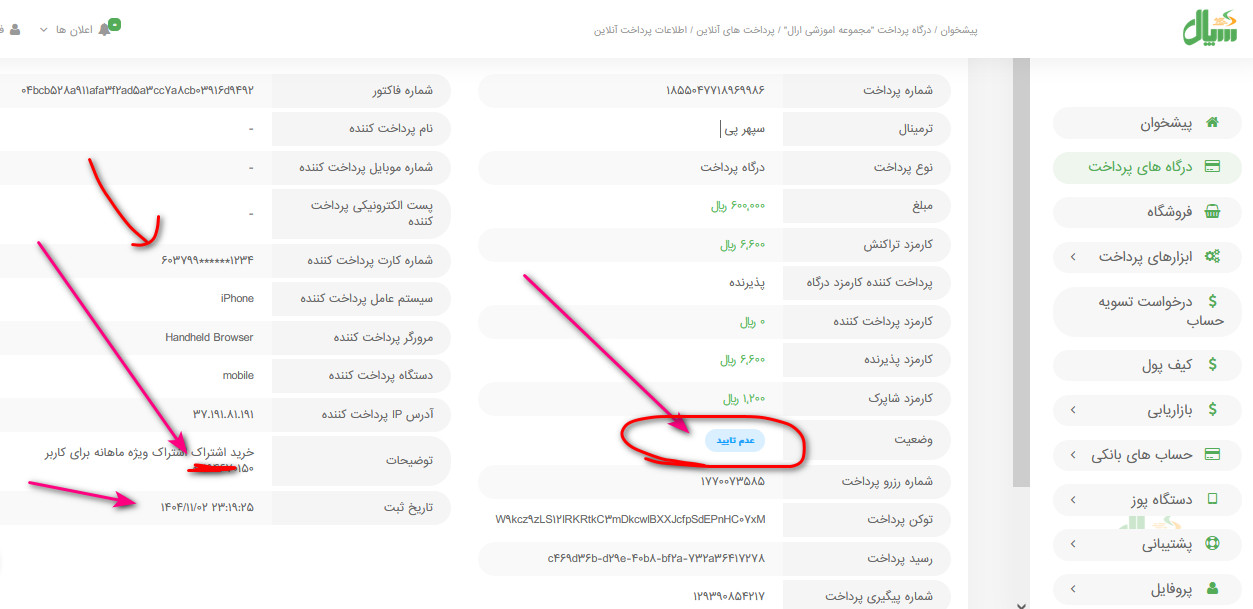این هم عکس تراکنش از درگاه